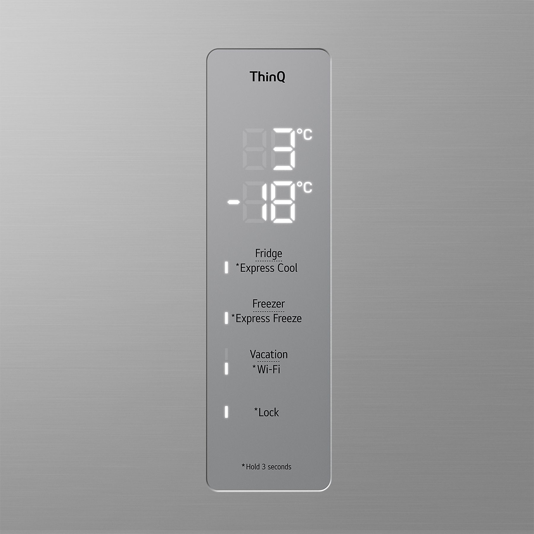 Verbind de koelkast met Wi-Fi en download de LG ThinQ-app op uw iOS- of Android-smartphone om veel functies binnen handbereik te hebben en je koelkast te beheren, zelfs als je niet thuis bent. Zo stel je de temperaturen van de koelkast en vriezer in, of activeer je de snelkoelfunctie wanneer je terugkomt van boodschappen. Bovendien kunt je het verbruik rechtstreeks vanaf de smartphone volgen.
