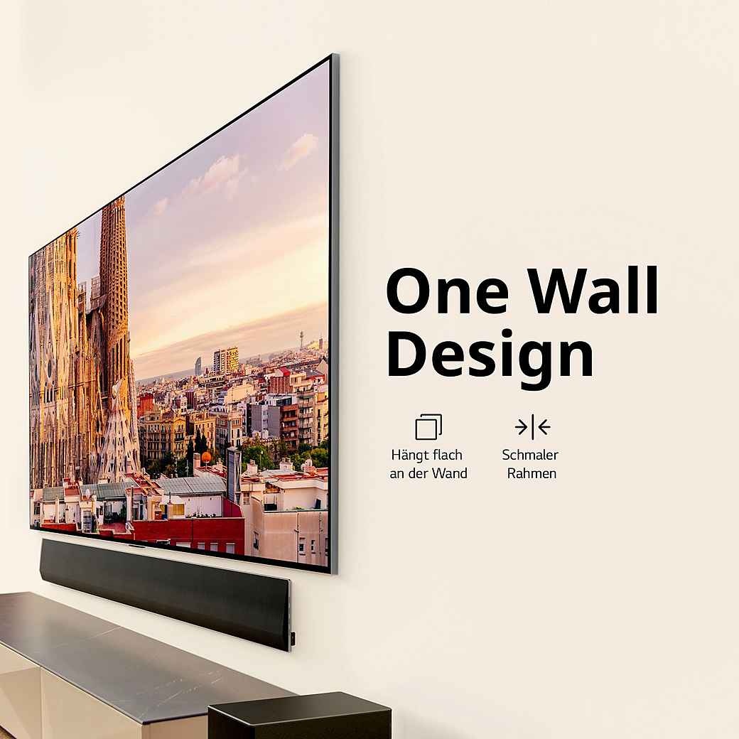 De speciaal ontworpen muurbeugel geeft je OLED TV een flush fit met vrijwel nul ruimte tegen de muur.