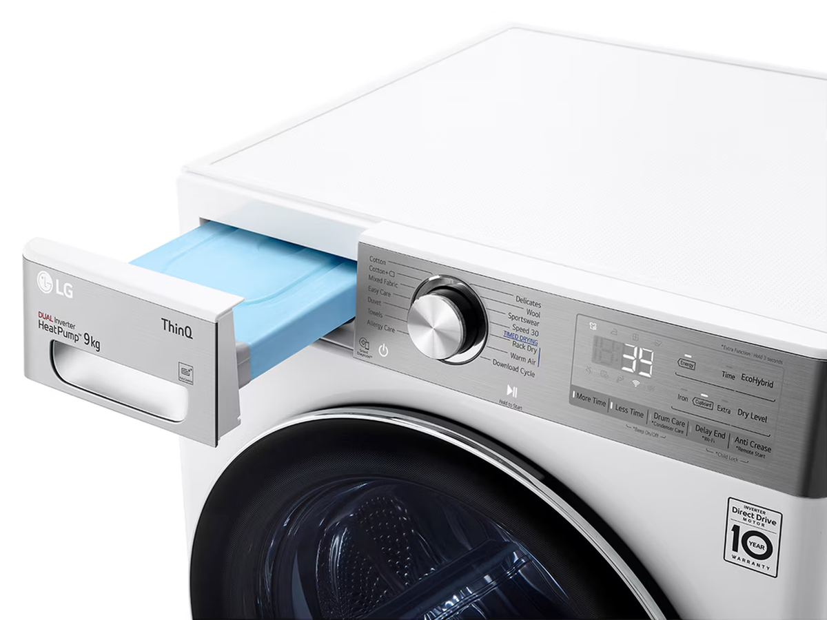 Met de LGThinQ™ app start je de droogcyclus en ontvang je notificaties zodra het wasgoed droog