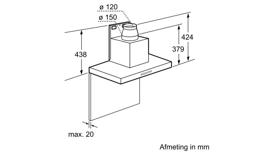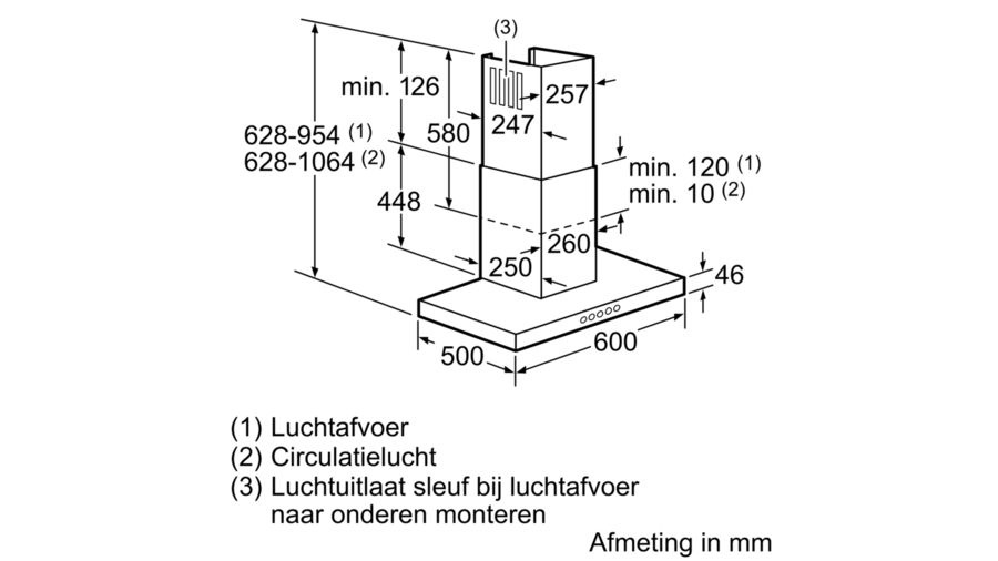 Afmetingen luchtafvoer (hxbxd): 628-954 x 600 x 500 mm