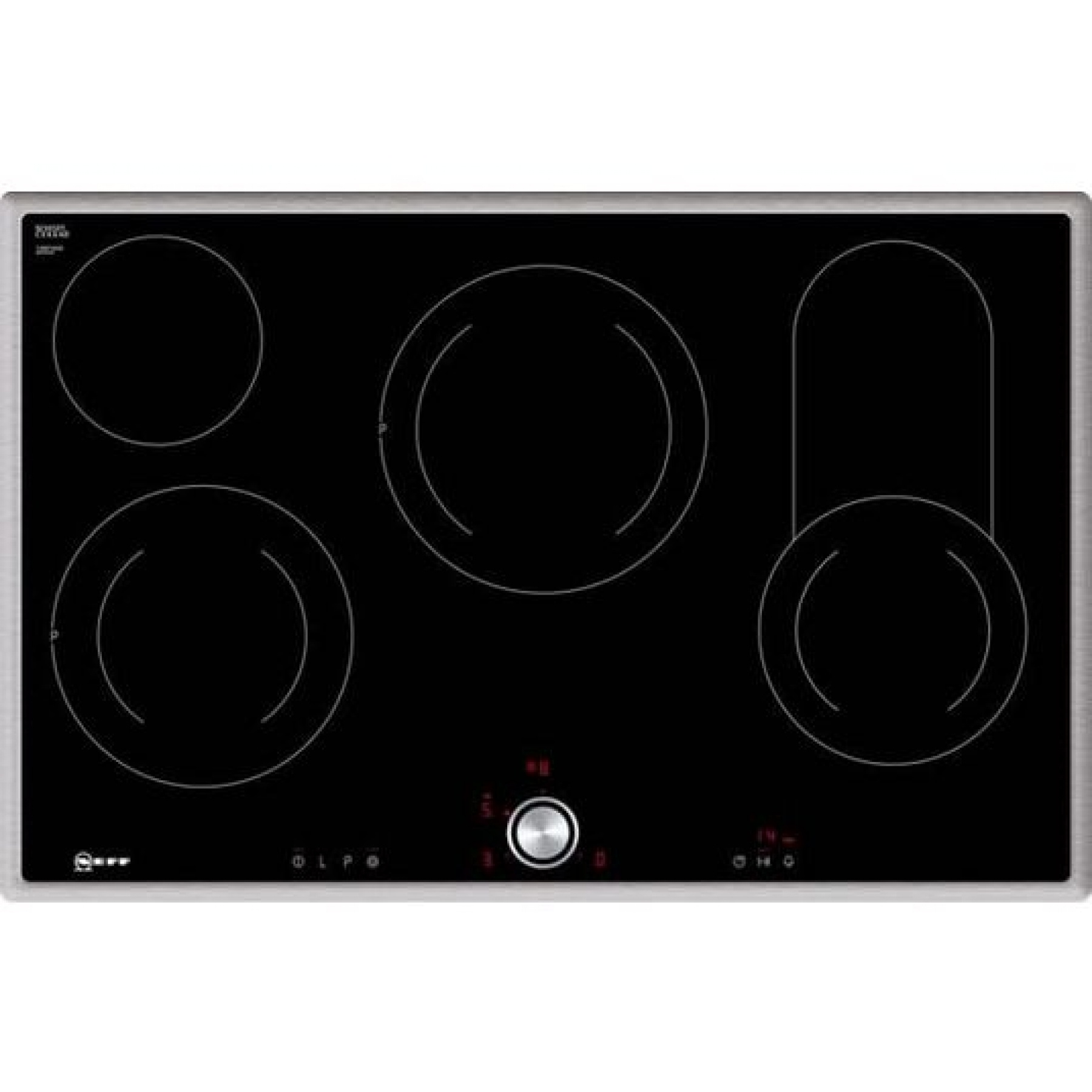 Grootte van de kookzones 1 x 14,5 cm Ø, 1 x 14,5 / 21 cm Ø, 1 x 18/23 cm Ø, 1 x 14,5 / 20/35 cm Ø