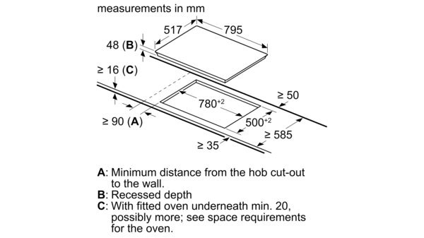 - Inbouwmaten (HxBxD) in cm: 4,8 x 78 x 50