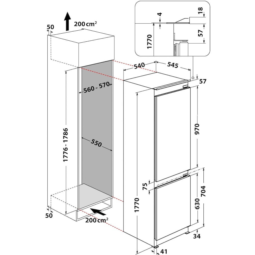 Privileg PCITN 18S3 inbouw koelvriescombinatie 178 cm | Nofrost
