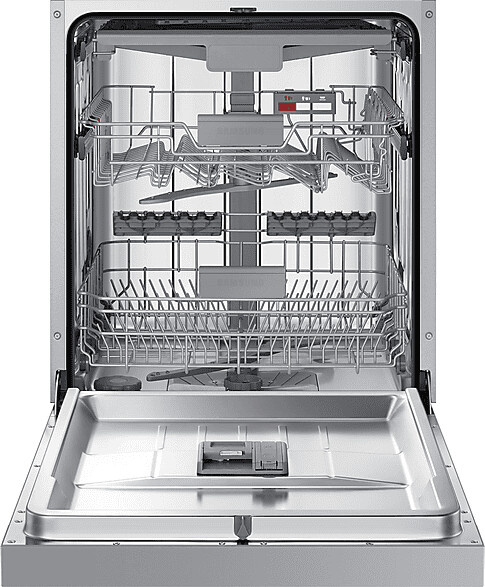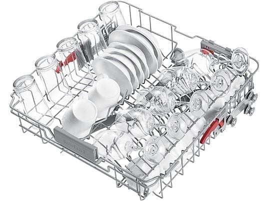 Het vernieuwde korfontwerp biedt maximale flexibiliteit. De verstelbare boven- en onderkorven passen zich eenvoudig aan verschillende soorten servies, pannen en schalen aan. De derde lade biedt extra ruimte voor bestek, keukengerei of kleine kopjes.