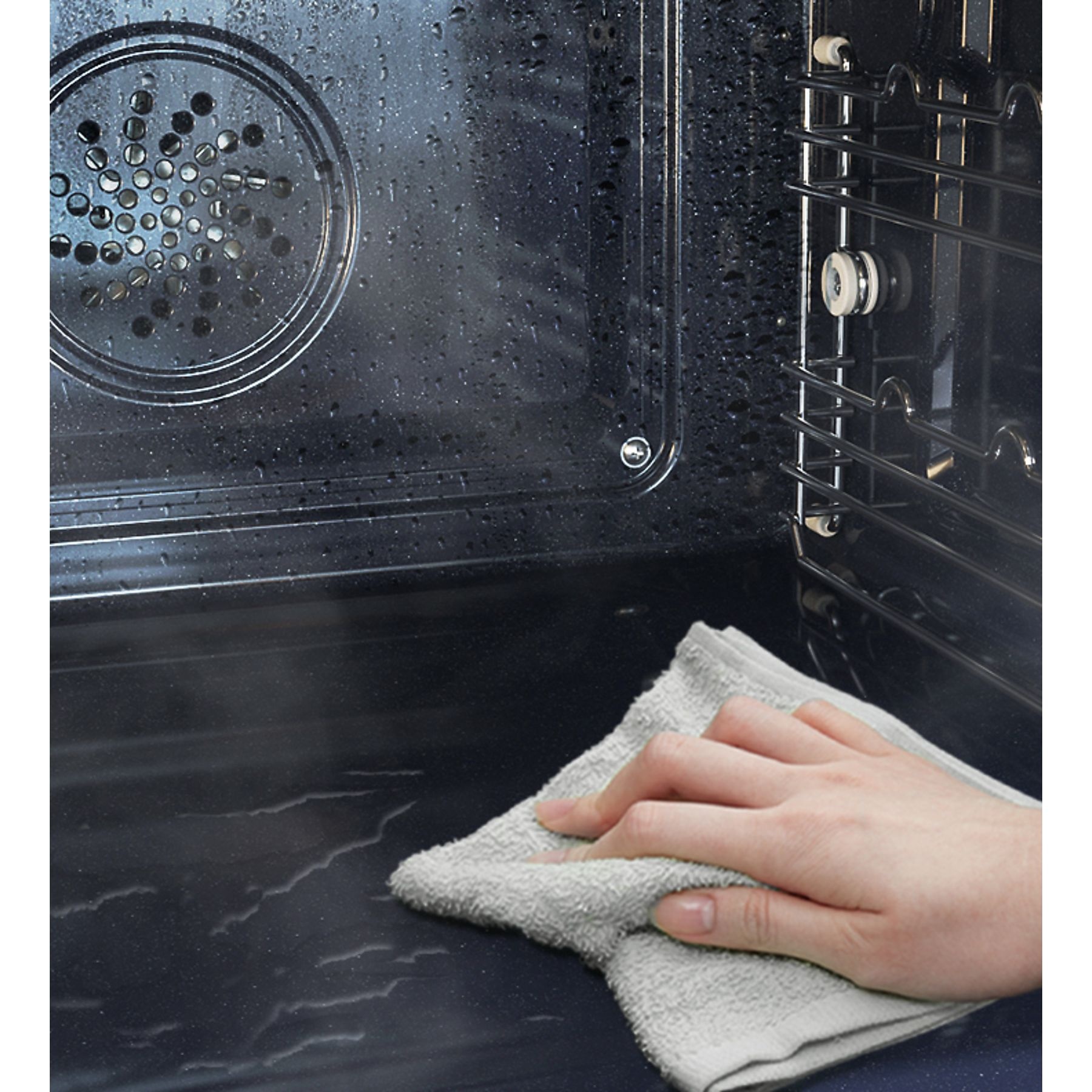 Je houdt deze combimagnetron eenvoudig schoon met een beetje hulp van het hydrolytische reinigingssysteem: Steam Cleaning. Alles wat jij hoeft te doen, is een beetje water over de bodem gieten en het reinigingsprogramma selecteren. Door het water te verdampen, ontstaat er stoom die vuil- en etensresten losweekt van de binnenwanden. Daarna nog even afvegen met een doekje, en jij kunt weer even vooruit. De binnenwanden zijn bovendien van emaille, dus zelfs zonder Steam Cleaning zijn ze na gebruik eenvoudig schoon te vegen. Zo kook, grill en bak jij altijd met een schone combimagnetron.