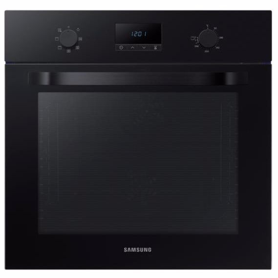 Samsung NV70K1340BB inbouw oven 60 cm De NV70K1340BB/EF is een inbouw oven van Samsung. Dankzij de twee ingebouwde ventilatoren is de oven twee keer zo snel en efficiënt. De twee in tegenovergestelde richting draaiende ventilatoren verspreiden de hitte gelijkmatig door de oven. Zo worden gerechten met dezelfde temperatuur en snelheid bereid. De oven heeft een korte voorverwarmtijd en is energiezuinig. Het katalytische reinigingssysteem zorgt ervoor dat de oven supermakkelijk schoon te houden is. De katalytische toplaag achterin de oven absorbeert spetters en afdruipend vet tijdens het bereiden en oxideert de resten op hoge temperatuur. De oven heeft een grote inhoud van 70 liter. Hij is voorzien van energieklasse A. Specificaties Merk Samsung Garantie 2 jaar Garantietype On-site service Inbouwmaten Plaatsing apparaat Inbouw Nisbreedte 55,8 - 56,4 cm Nishoogte 60 cm Nisdiepte 55 cm Geschikt voor IKEA METOD keukens Ja Geschikt voor IKEA FAKTUM keukens Ja Fysieke eigenschappen Bouwkwaliteit Basisklasse Breedte 59,5 cm Hoogte 59,5 cm Diepte 56,6 cm Inhoud 70 l Interne afmetingen: hoogte 57,2 cm Interne afmetingen: breedte 56 cm Interne afmetingen: diepte 40,1 cm Gewicht 32,6 kg Kleur Zwart Openingsrichting Horizontaal Zacht sluitende deur Nee Uitneembare ovendeur Ja Telescopische rail Nee Materiaal wanden binnenzijde Emaille Gebruiksgemak Reinigingsmethode Katalyse Automatische kookprogramma's Nee Binnenverlichting Ja Kinderbeveiliging Ja Standaard meegeleverd Bakplaat, Handleiding, Installatiemateriaal, Ovenrooster, Stroomkabel Ovenfuncties Type oven / magnetron Solo oven Magnetron/ovenfuncties Grill, Oven Type ovenfuncties Bovenwarmte, Gelijktijdige boven- en onderwarmte, Grill, Hetelucht Positie grill Bovengrill Type hetelucht Hetelucht Bereidingskwaliteit Middenklasse Aanbevolen voor type eten Taart bakken Minimale oventemperatuur 50 °C Maximale oventemperatuur 250 °C Snel voorverwarmen Ja Ontdooifunctie Nee Bedieningsmogelijkheden Bedieningsmogelijkheden Draaiknoppen Timer Ja Type timer Elektronisch Display Ja Digitale weergave Bereidingstijd, Klok, Resttijd Taal bedieningspaneel Symbolen Stroomvoorziening Kabellengte 1,5 m Aansluitwaarde 3400 W Stekker meegeleverd Ja