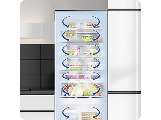 Houd je producten langer vers. Het Twin Cooling Plus™-systeem optimaliseert de temperatuur en luchtvochtigheid in de koelkast en vriezer, dankzij de losse verdampers en ventilatoren. Voedingswaren blijven onder de beste omstandigheden bewaard en behouden hun natuurlijke smaak en aroma, omdat er wordt verhinderd dat geurtjes zich met elkaar vermengen.