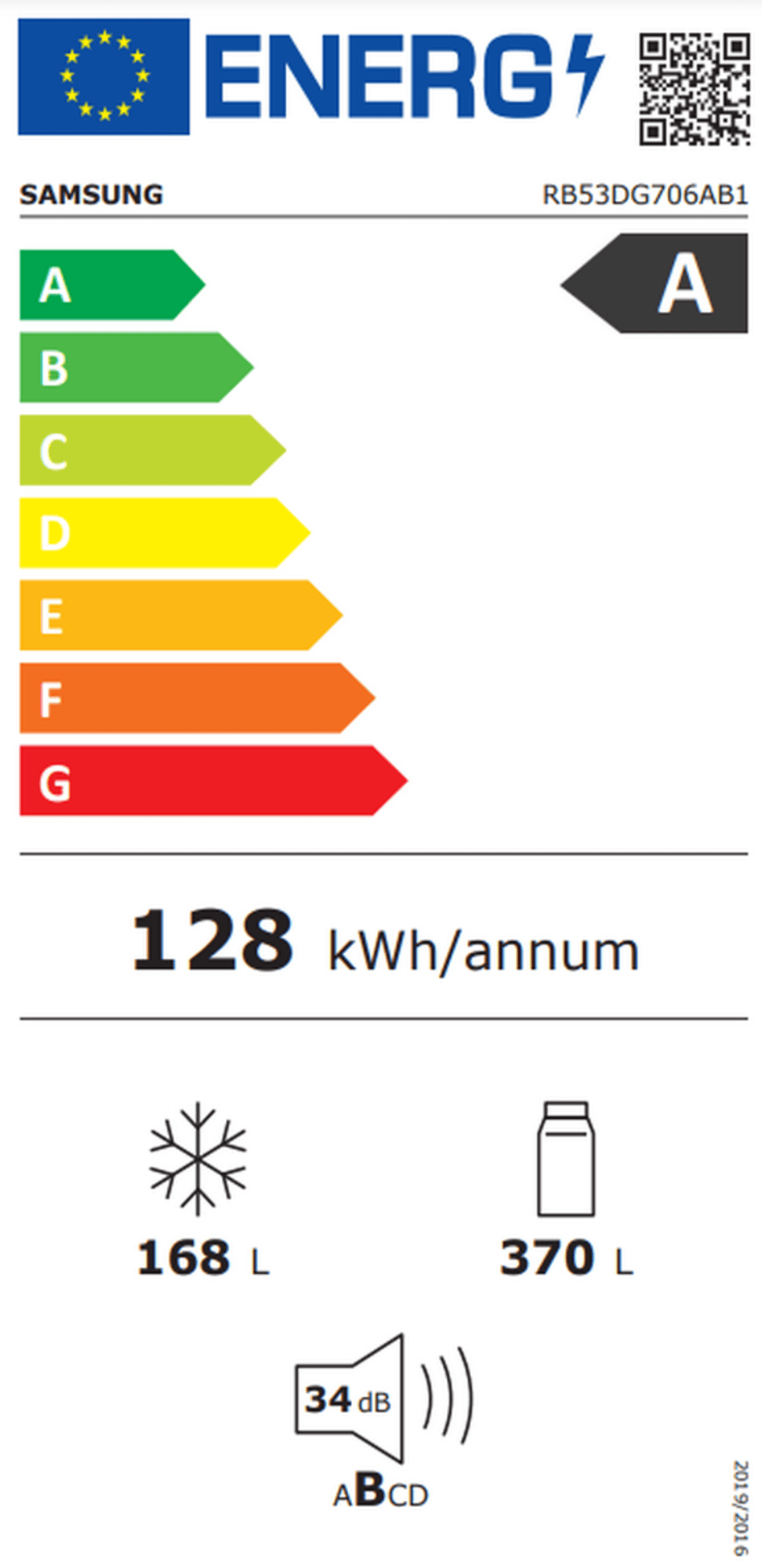 Energieconsumptie per jaar 128 kWh
