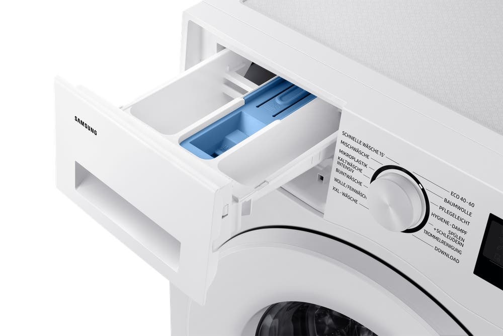 Minder zeepresten uit de wasmiddellade verwijderen. De lade is voorzien van een speciaal ontwikkeld spoelsysteem dat automatisch de laatste wasmiddelresten verwijdert door middel van krachtige waterstralen. Er blijven dus minder vieze en plakkerige zeepresten achter, waardoor het wasmiddelbakje hygiënisch schoon blijft. En doordat wasmiddel efficiënt naar de trommel wordt doorgeleid, wordt je kleding grondig gereinigd.