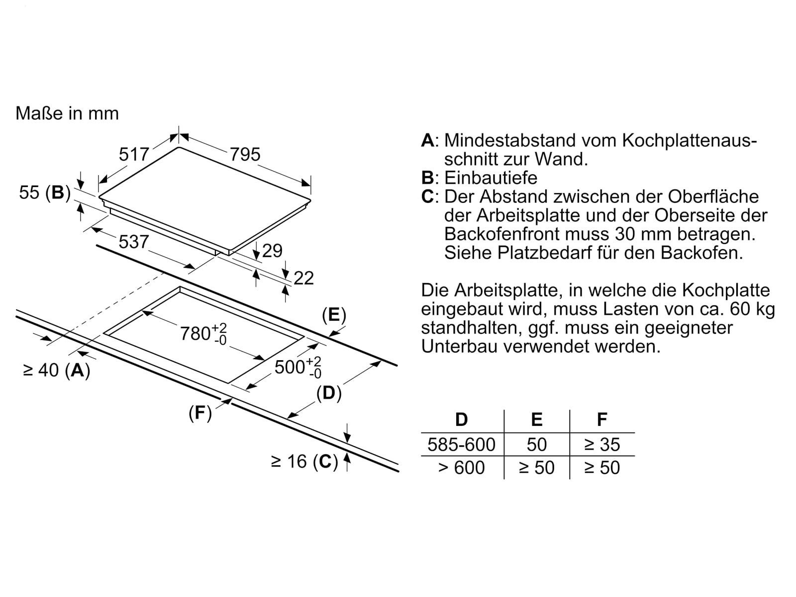 Inbouwafmetingen (hxbxd) 55 x 780 x 500 mm