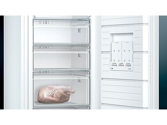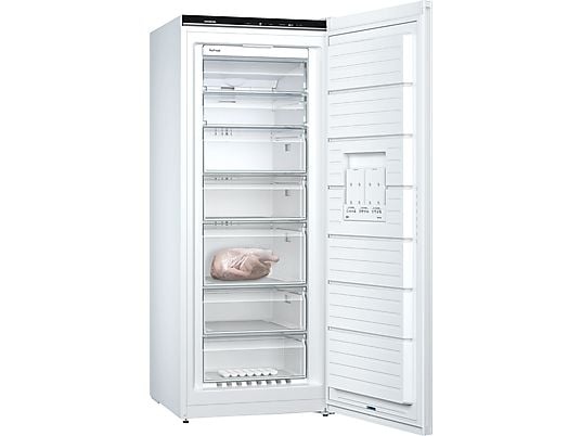 Met VarioZone pas je de vriezer moeiteloos aan je behoeften aan. De lades en glazen plateaus zijn eenvoudig uitneembaar, zodat je meer ruimte creëert voor grotere verpakkingen of extra voorraad. Zo richt je je vriesgedeelte precies in zoals jij het wilt.