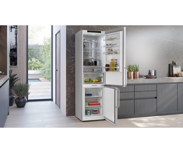 Dankzij de Total noFrost-technologie hoef je je geen zorgen meer te maken over het ontdooien van je vriezer. Total noFrost onttrekt vocht uit de lucht, waardoor er geen ijsvorming optreedt op de wanden en je etenswaren. Dit geldt ook voor de koelkast. Vocht en ijs zetten niet meer af op de achterwand, zodat je boodschappen goed bewaard blijven. Dit bespaart je niet alleen de moeite van het ontdooien, maar maakt je apparaat ook energiezuiniger.