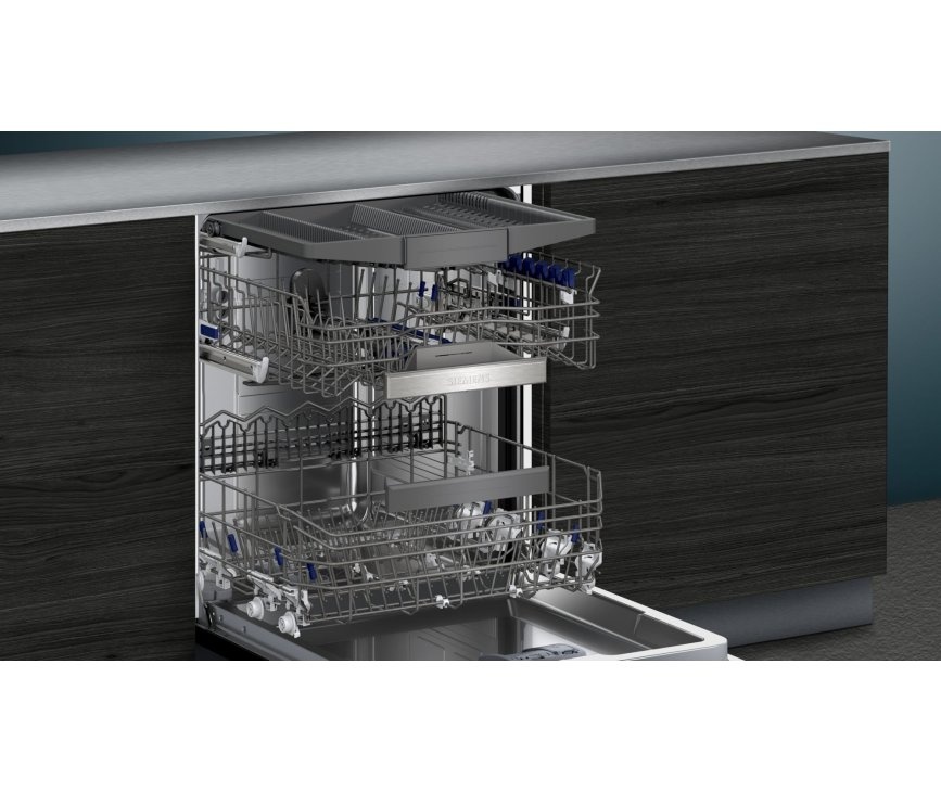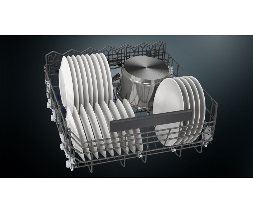Het premium design van de Siemens vaatwasser is niet alleen zichtbaar aan de buitenzijde. Dankzij de blauwgekleurde markeringen in de vaatwasser weet je precies welke onderdelen van de vaatwasser je kunt aanpassen. Grote pannen stapel je simpel en snel. En wijn- en champagneglazen staan extra stevig.