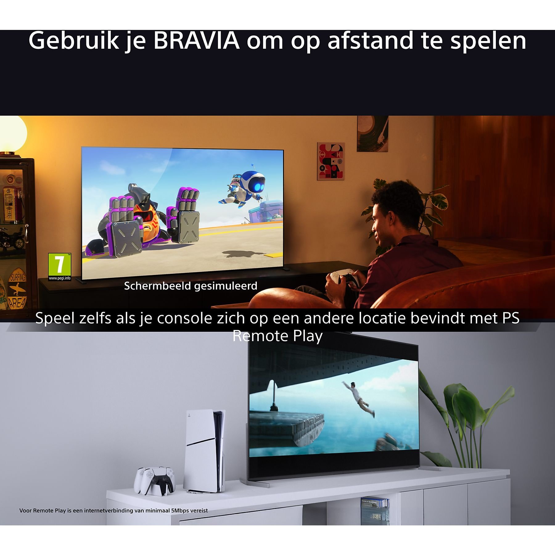 De Sony BRAVIA 5 beschikt over Acoustic Multi-Audio-technologie, waarbij speakers strategisch zijn geplaatst om het geluid nauwkeurig te laten overeenkomen met de actie op het scherm. Met de ingebouwde Google Assistant kun je de tv handsfree bedienen en eenvoudig toegang krijgen tot je favoriete content. Daarnaast biedt de tv ondersteuning voor Dolby Atmos, wat zorgt voor een meeslepende surround sound-ervaring. Bovendien verbind je dankzij Remote Play vanaf waar dan ook met je PlayStation 4 of 5, zolang je met hetzelfde internet bent verbonden. Je hoeft je console dus niet steeds te verplaatsen.