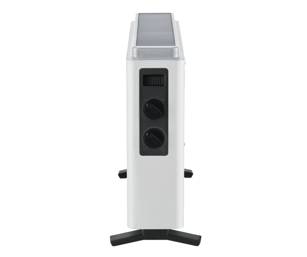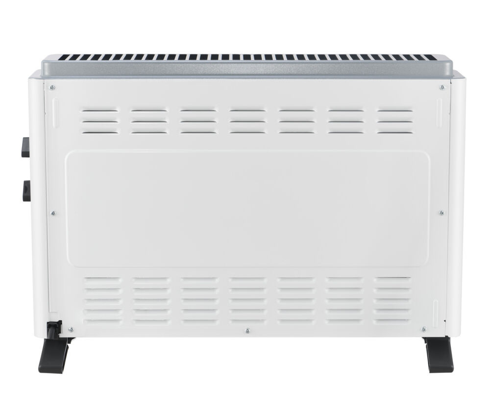 Deze convectorkachel heet een strak wit design. Je kunt de vrijstaande convectorkachel instellen met de draaiknoppen aan de zijkant van het apparaat. Hiermee kun je de 3 warmteniveaus instellen. Aan de bovenkant van de kachel bevinden zich ventilatieroosters. Deze roosters laten koude lucht in de kachel stromen, waar het wordt verwarmd en vervolgens als warme lucht wordt uitgestoten. Hij is voorzien van een handgreep aan de zijkant. Hierdoor kan hij gemakkelijk worden verplaatst naar verschillende ruimtes.