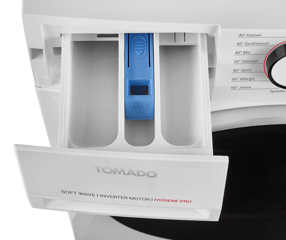 De Tomado TWM8001W wasmachine heeft 8KG vulcapaciteit en 1400 toeren. Dankzij energieklasse B wast hij ontzettend zuinig. Deze wasmachine beschikt over 15 automatische wasprogramma's, waaronder: intensief, fijne was en ECO. Ook heeft de wasmachine een kort 15 minuten programma waarmee je een kleine hoeveelheid wasgoed een snelle opfrisbeurt kunt geven. Door de resttijdindicatie ben je altijd op de hoogte hoe lang de wasmachine nog bezig is met het wassen van jouw kleding. Heb je de was in de wasmachine gestopt, maar wil je nog niet dat het programma start? De startuitstel functie zorgt ervoor dat jij tot 24u kunt kiezen wanneer het programma start.
