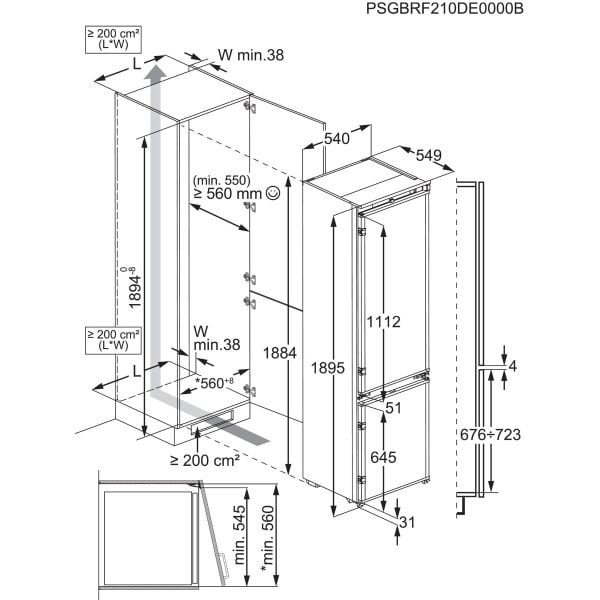 Inbouwmaten hxbxd (mm): 1894x560x550